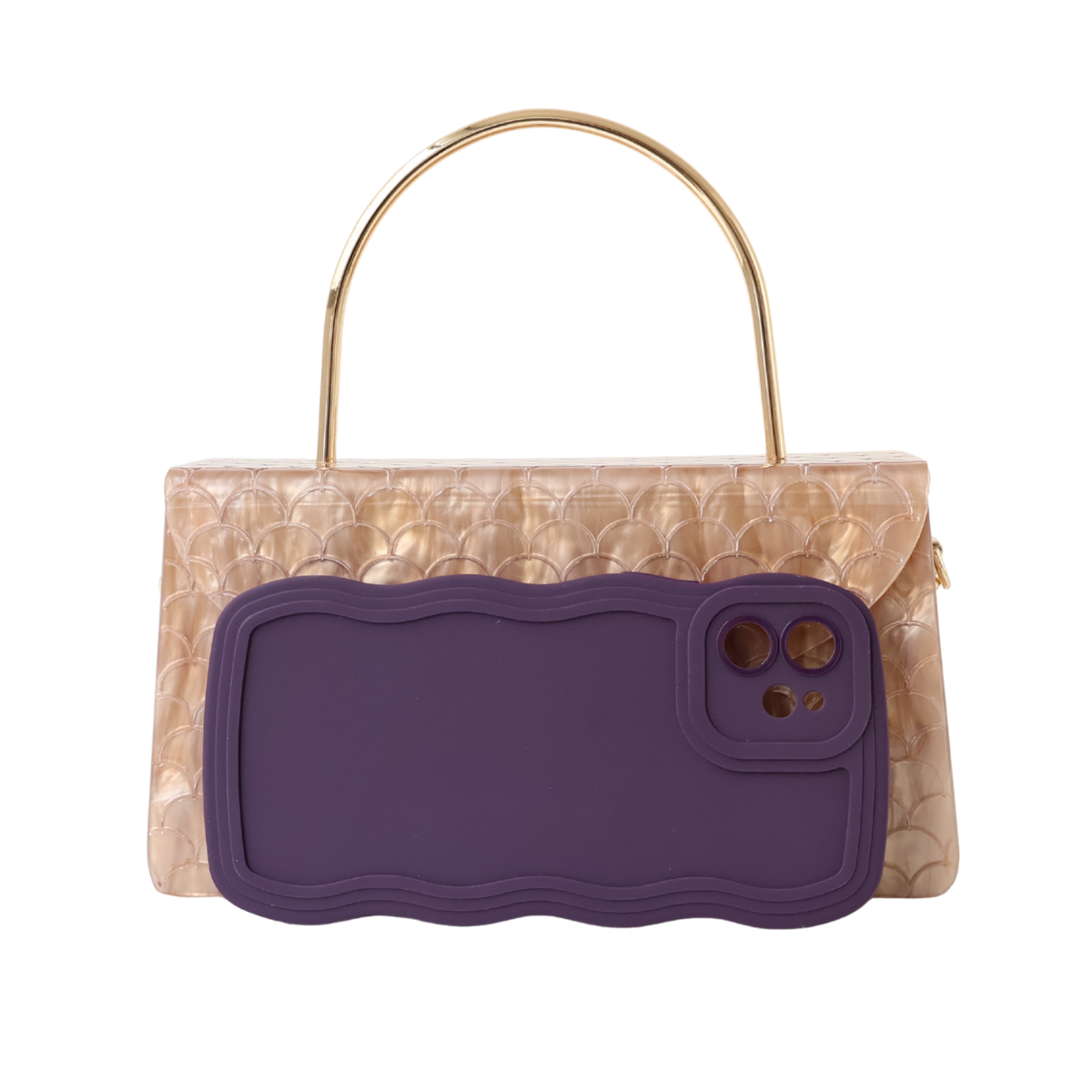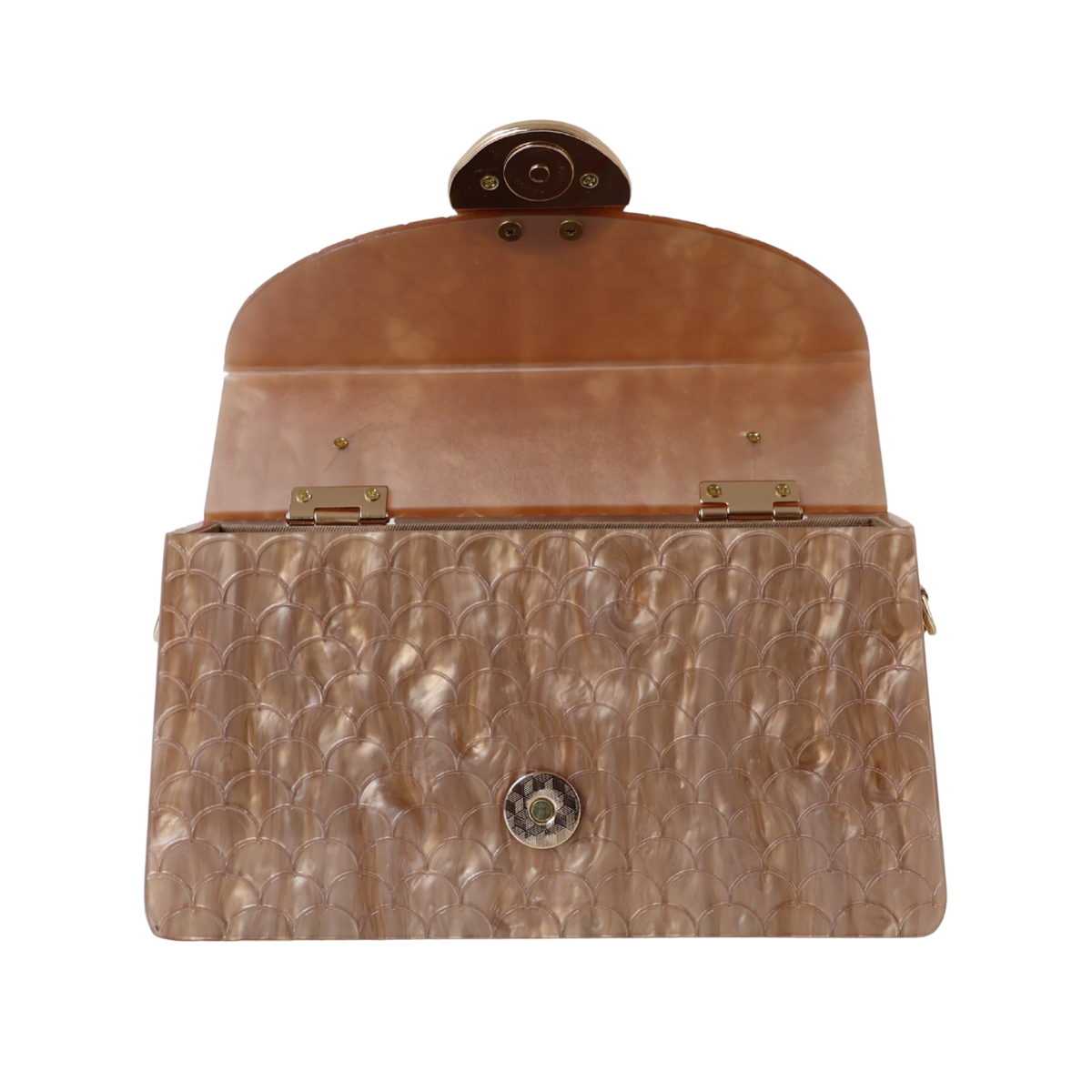 Bolsa de Festa Baú Acrílico Perolada Marrom