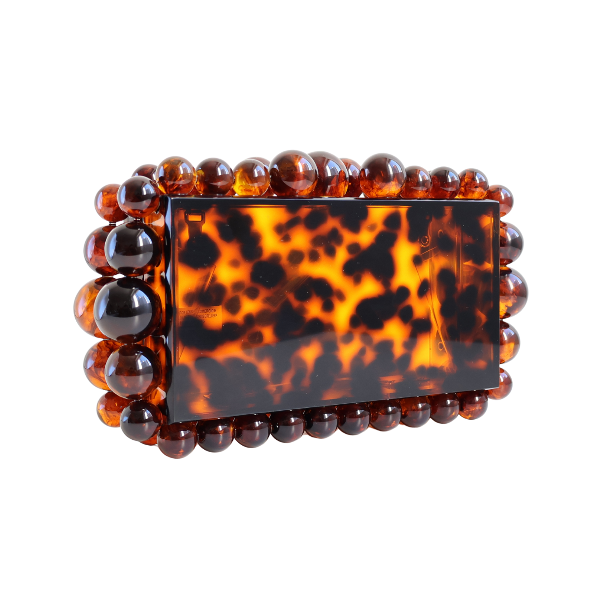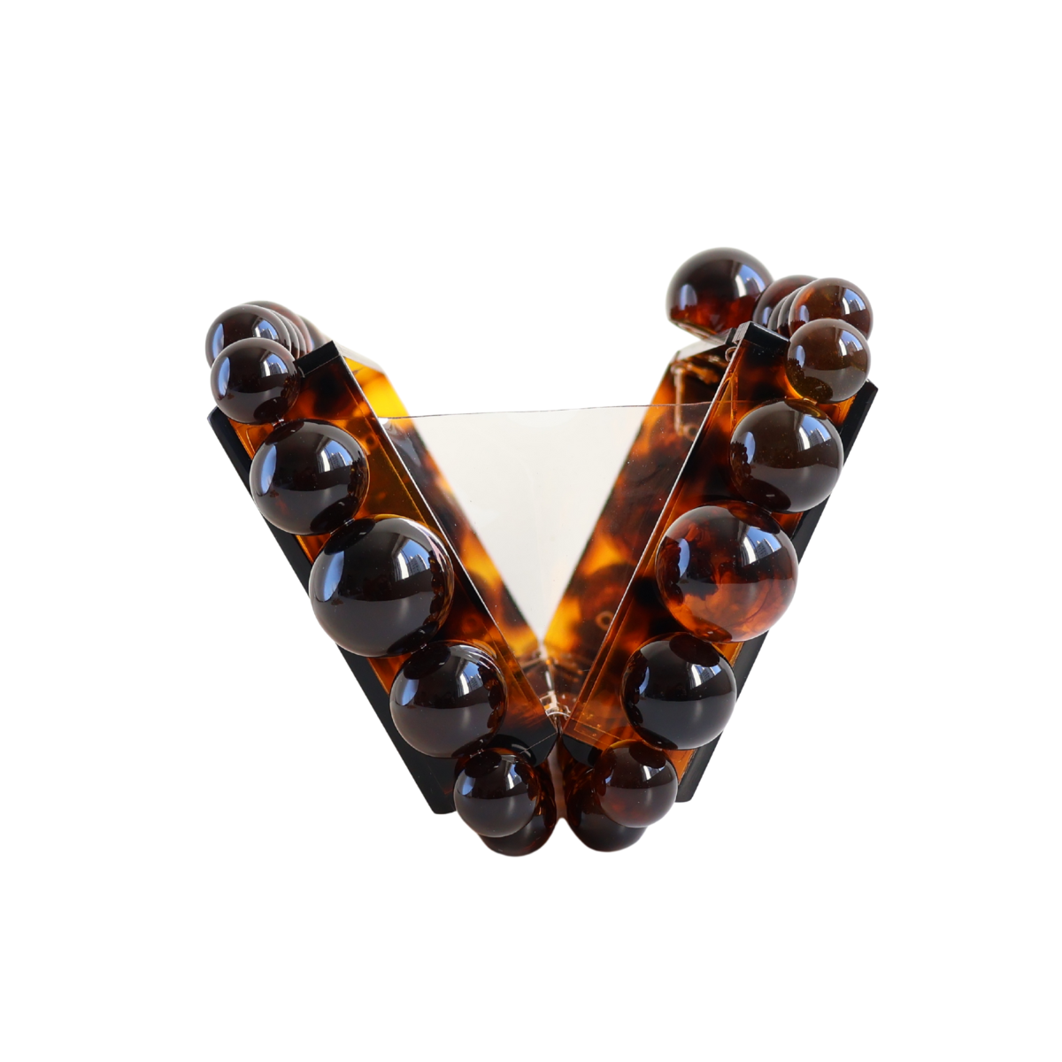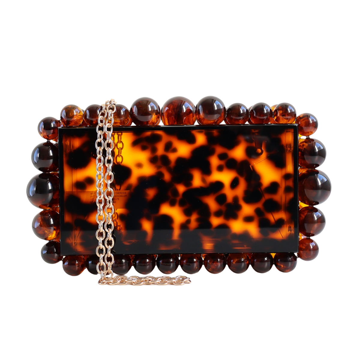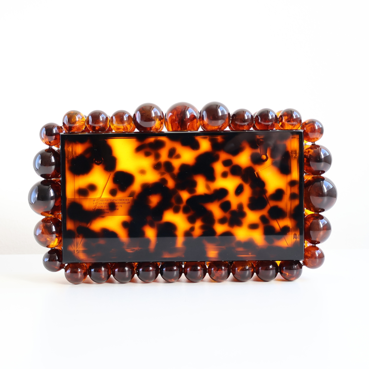 Bolsa de Festa Clutch Acrílico Bolas Marrom Animal Print
