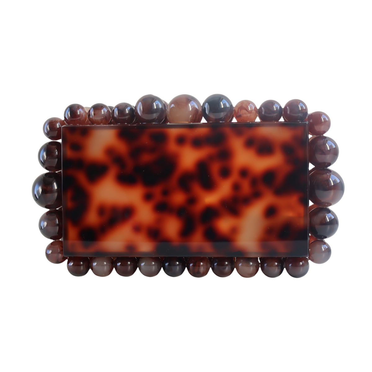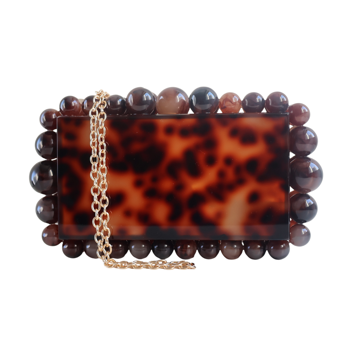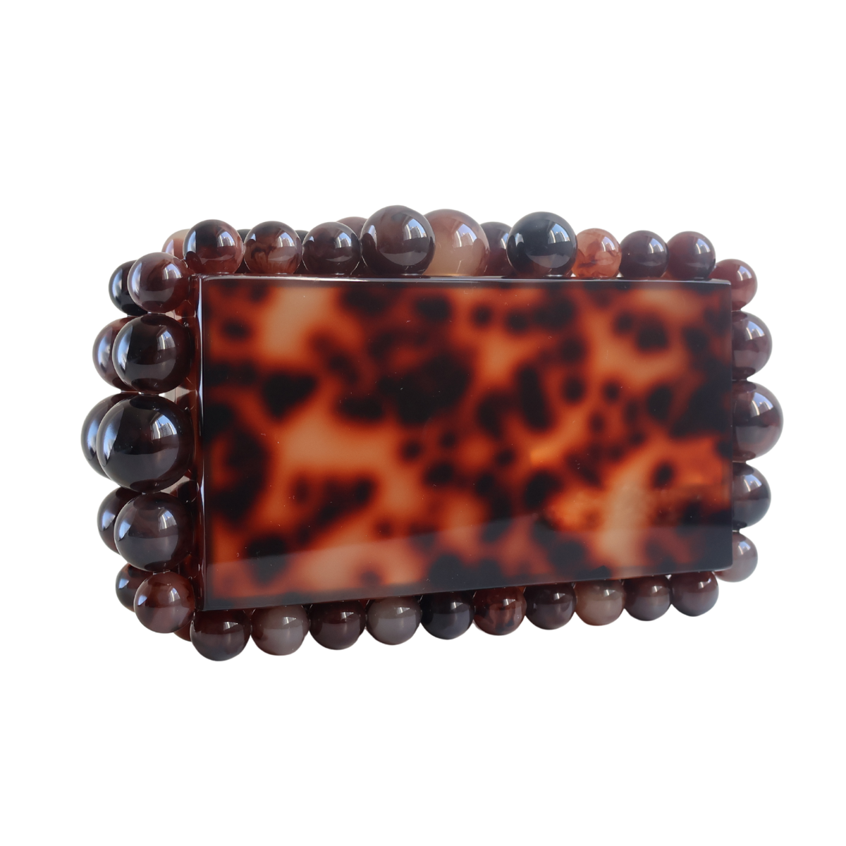 Bolsa de Festa Clutch Acrílico Bolas Marrom Animal Print Fosca
