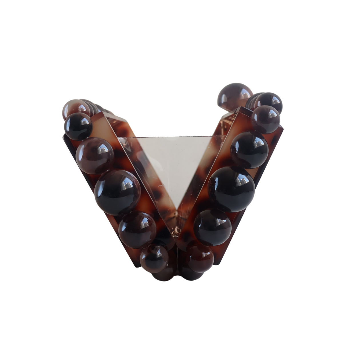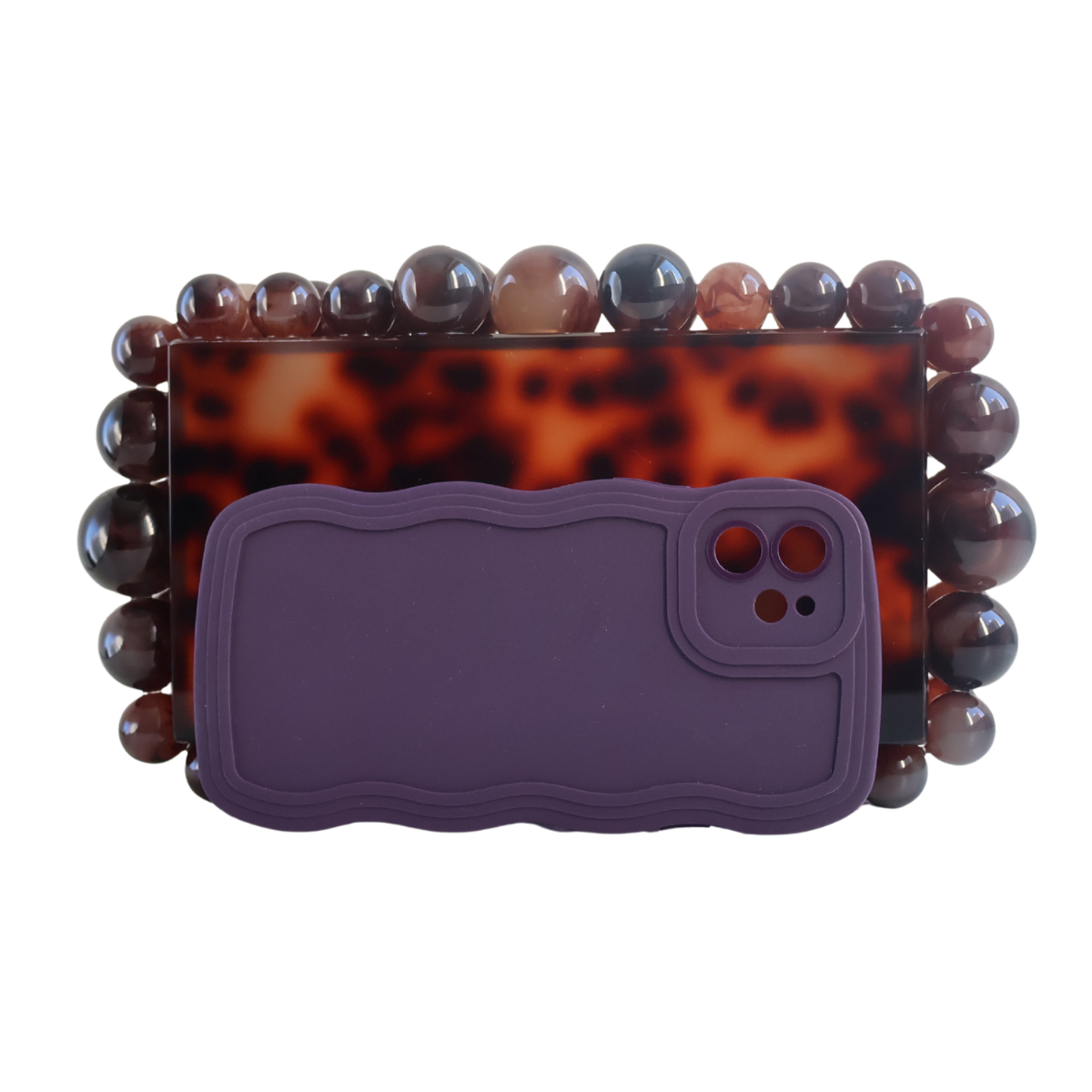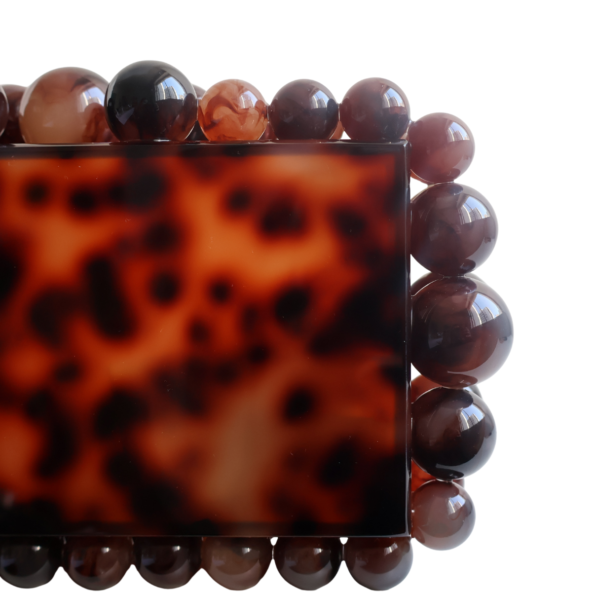 Bolsa de Festa Clutch Acrílico Bolas Marrom Animal Print Fosca