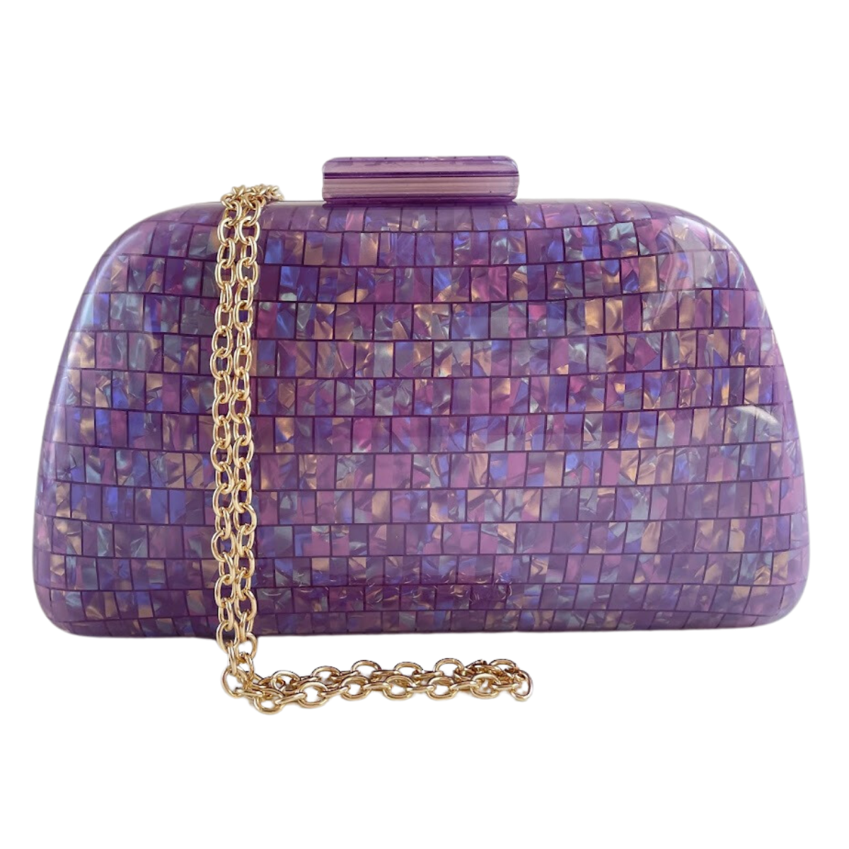 Bolsa de Festa Clutch Acrílico Perolada Roxa