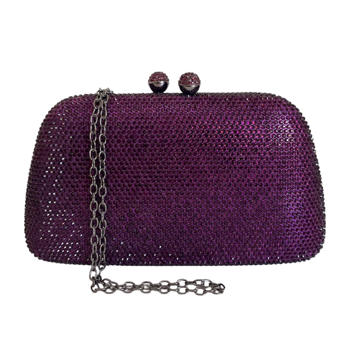 Bolsa de Festa Clutch Cristais Pedraria Roxa