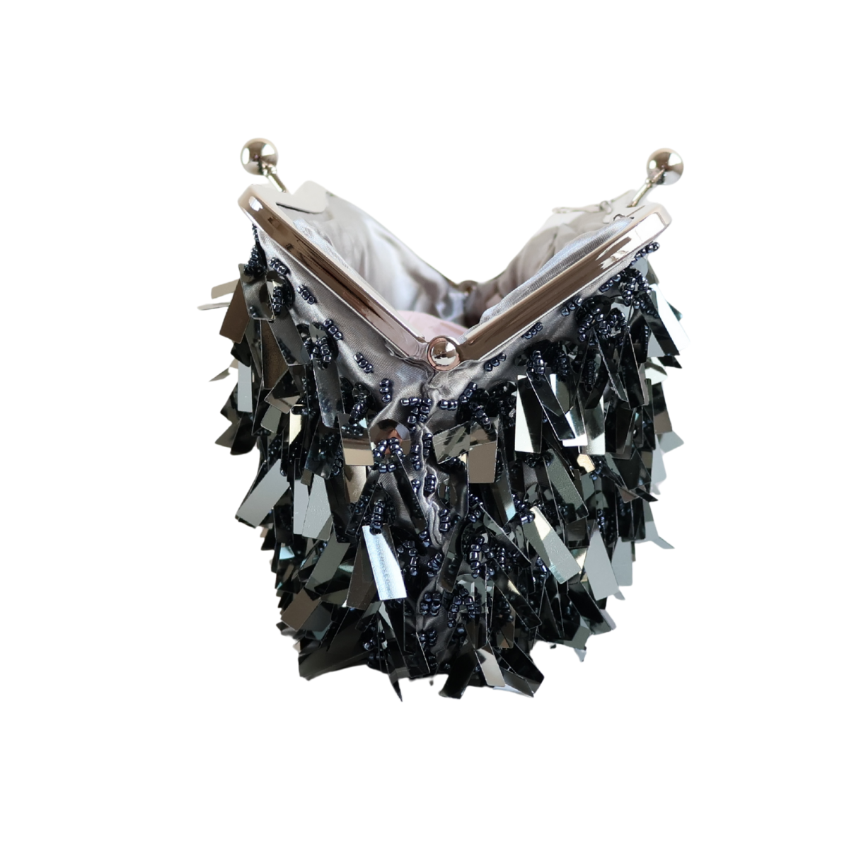 Bolsa de Festa Clutch Lantejoula Folha Brilhante Cinza Grafite