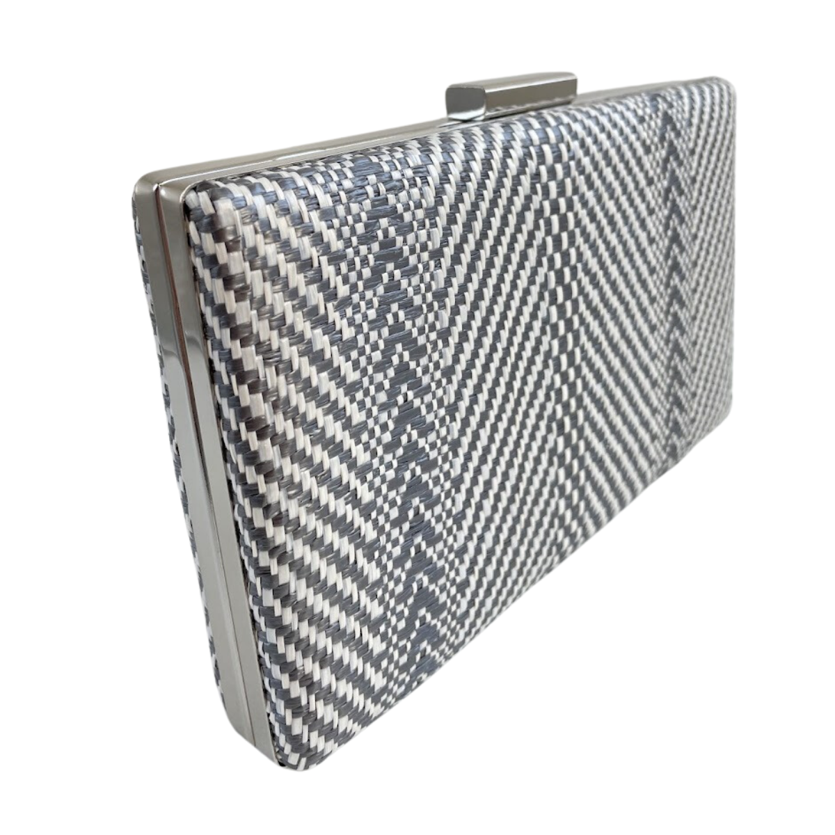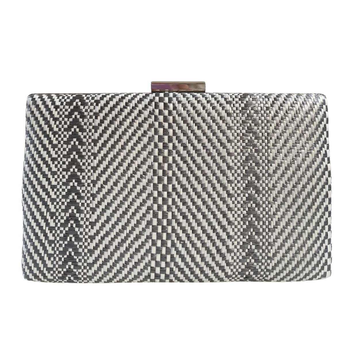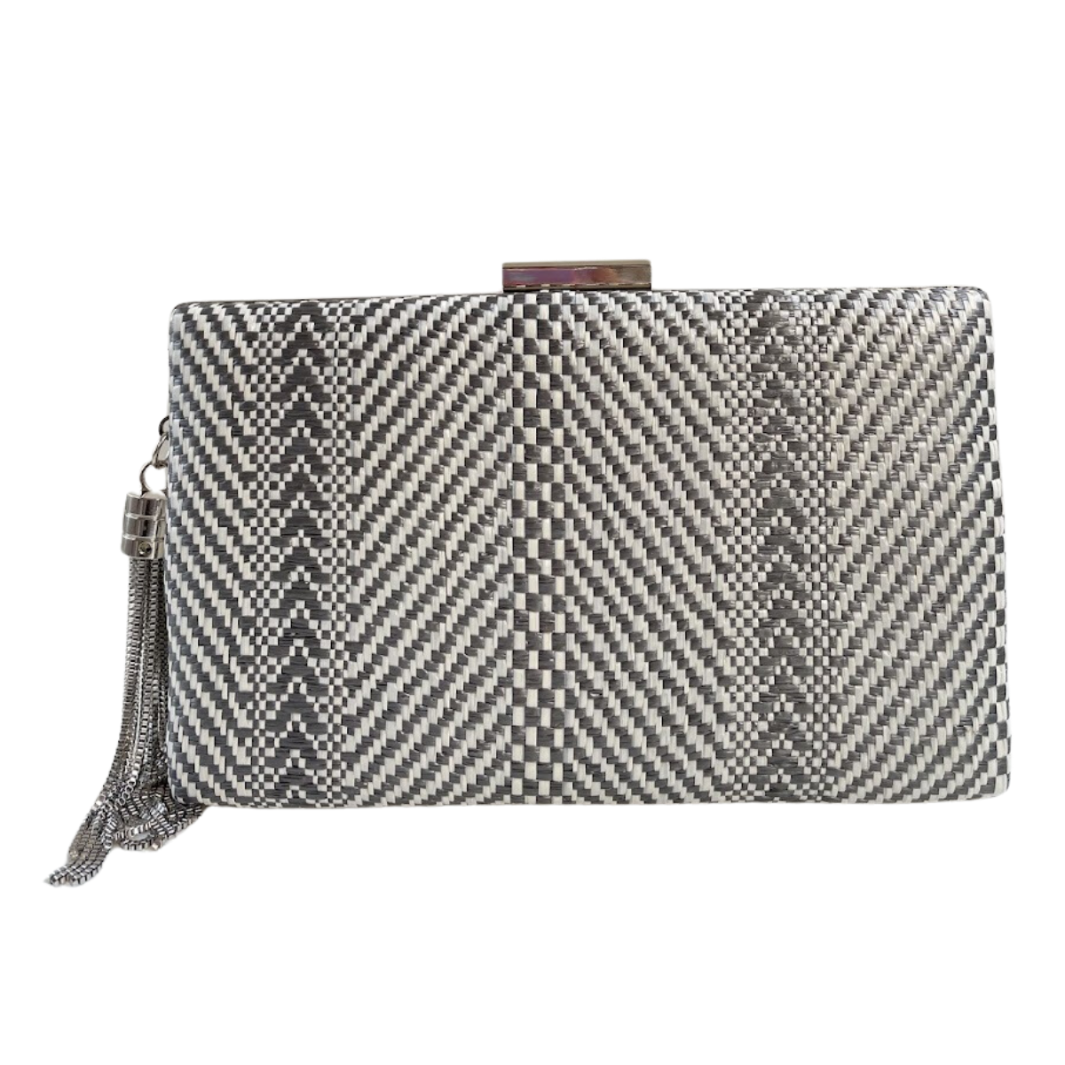 Bolsa de Festa Clutch Listras Cinza e Branco