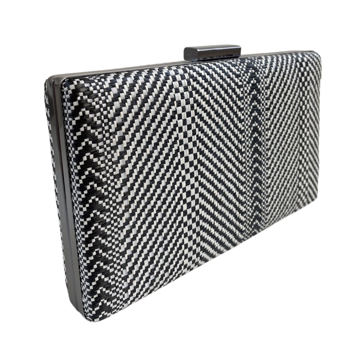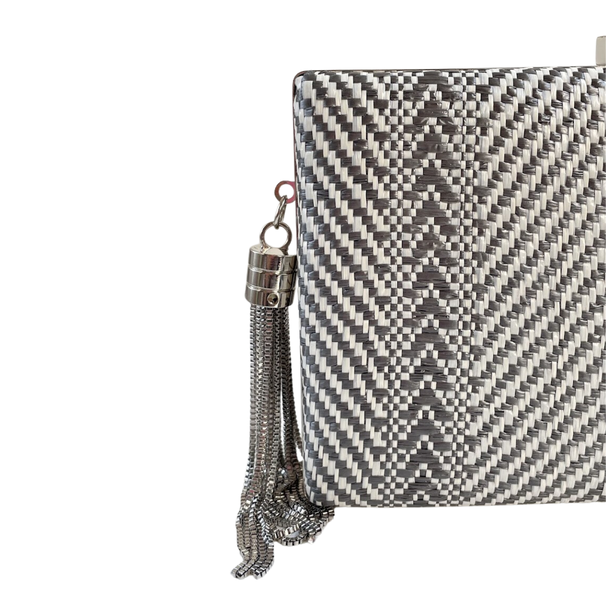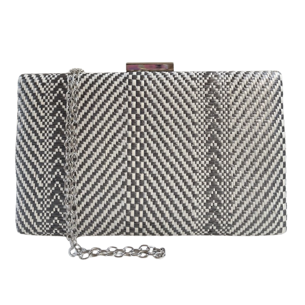 Bolsa de Festa Clutch Listras Cinza e Branco