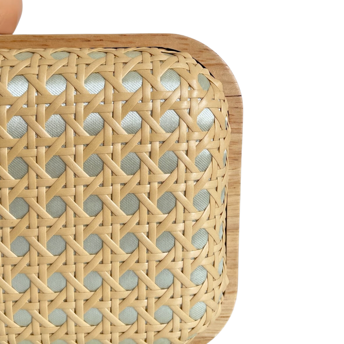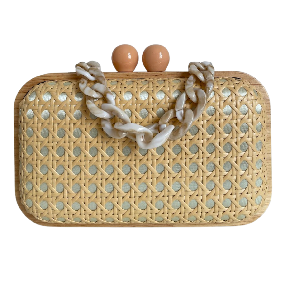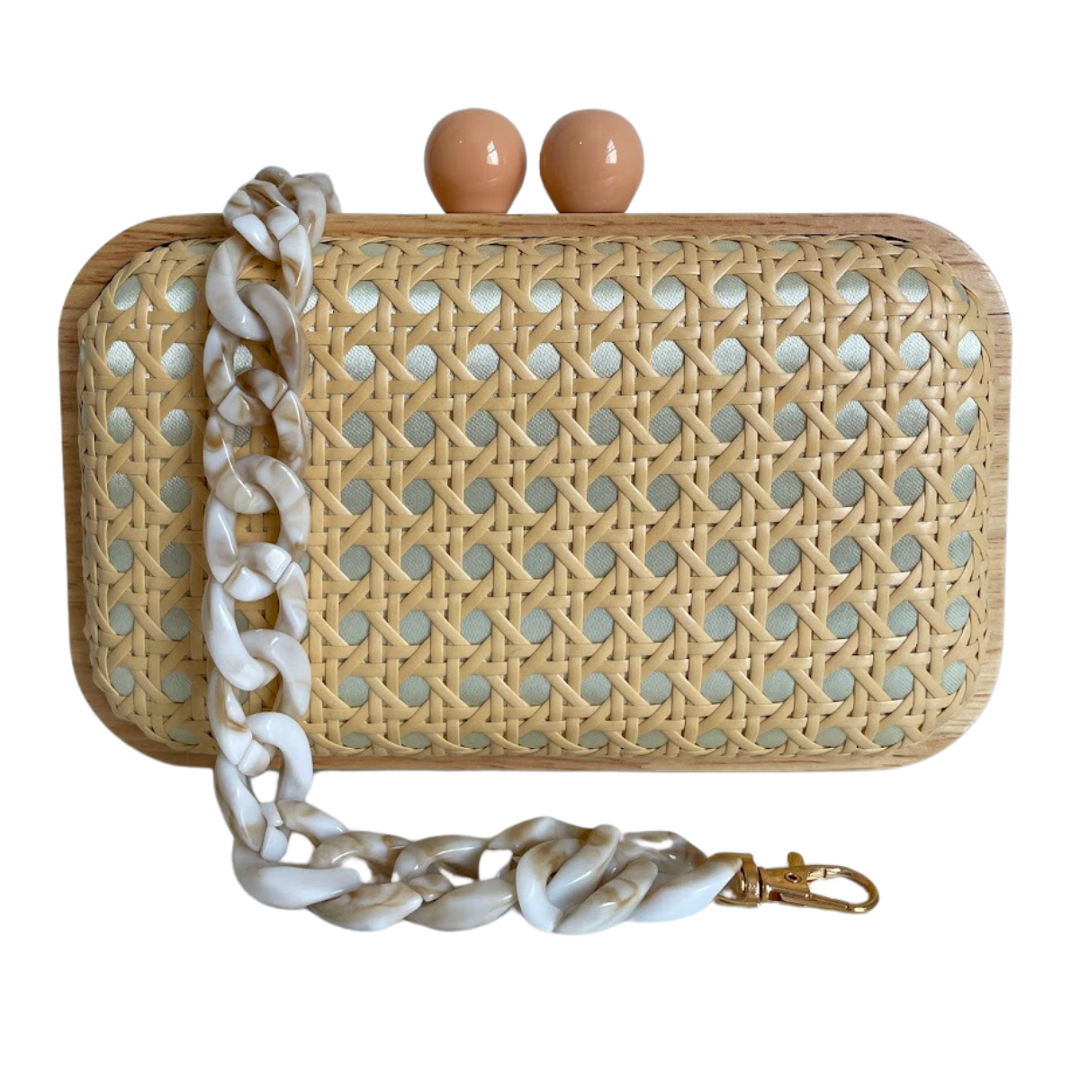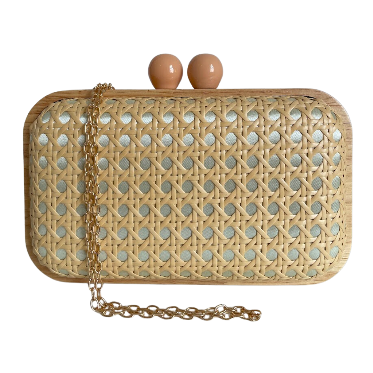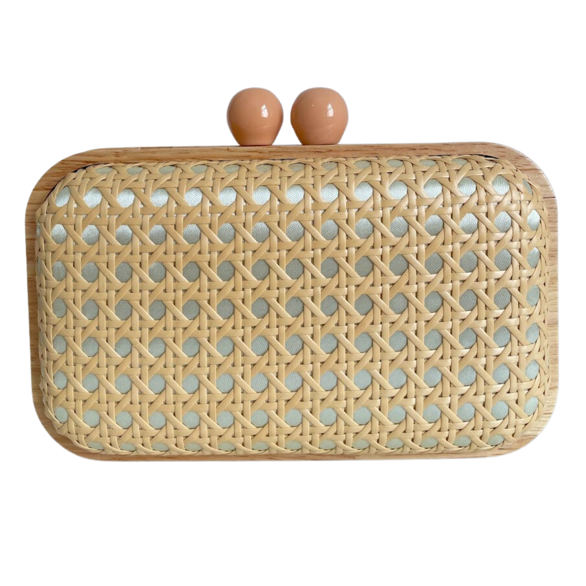 Bolsa de Festa Clutch Madeira e Palha da Índia Bege