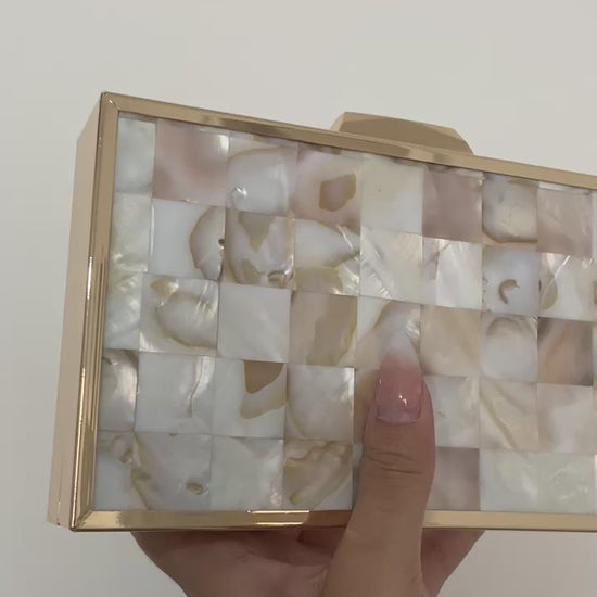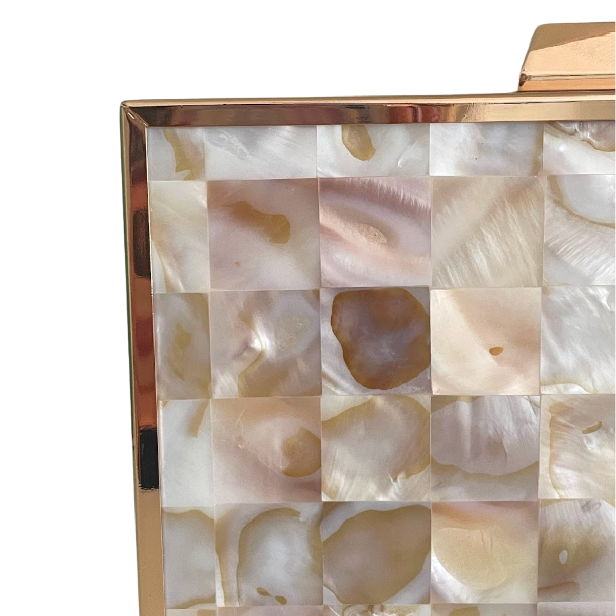 Bolsa de Festa Clutch Metalizada Madrepérola Bege