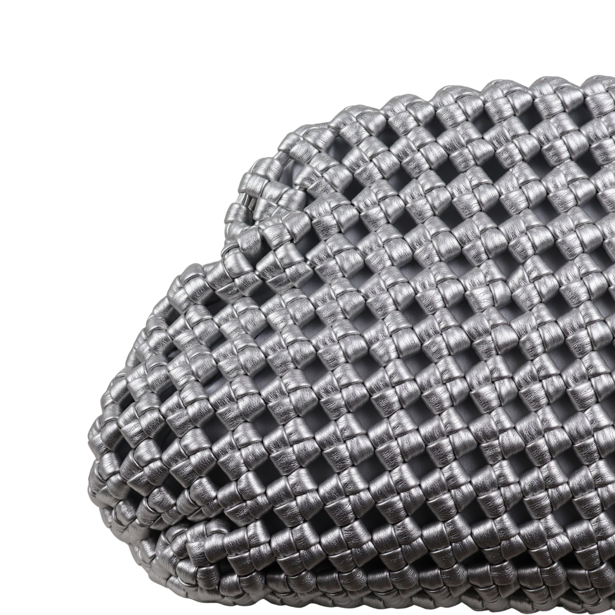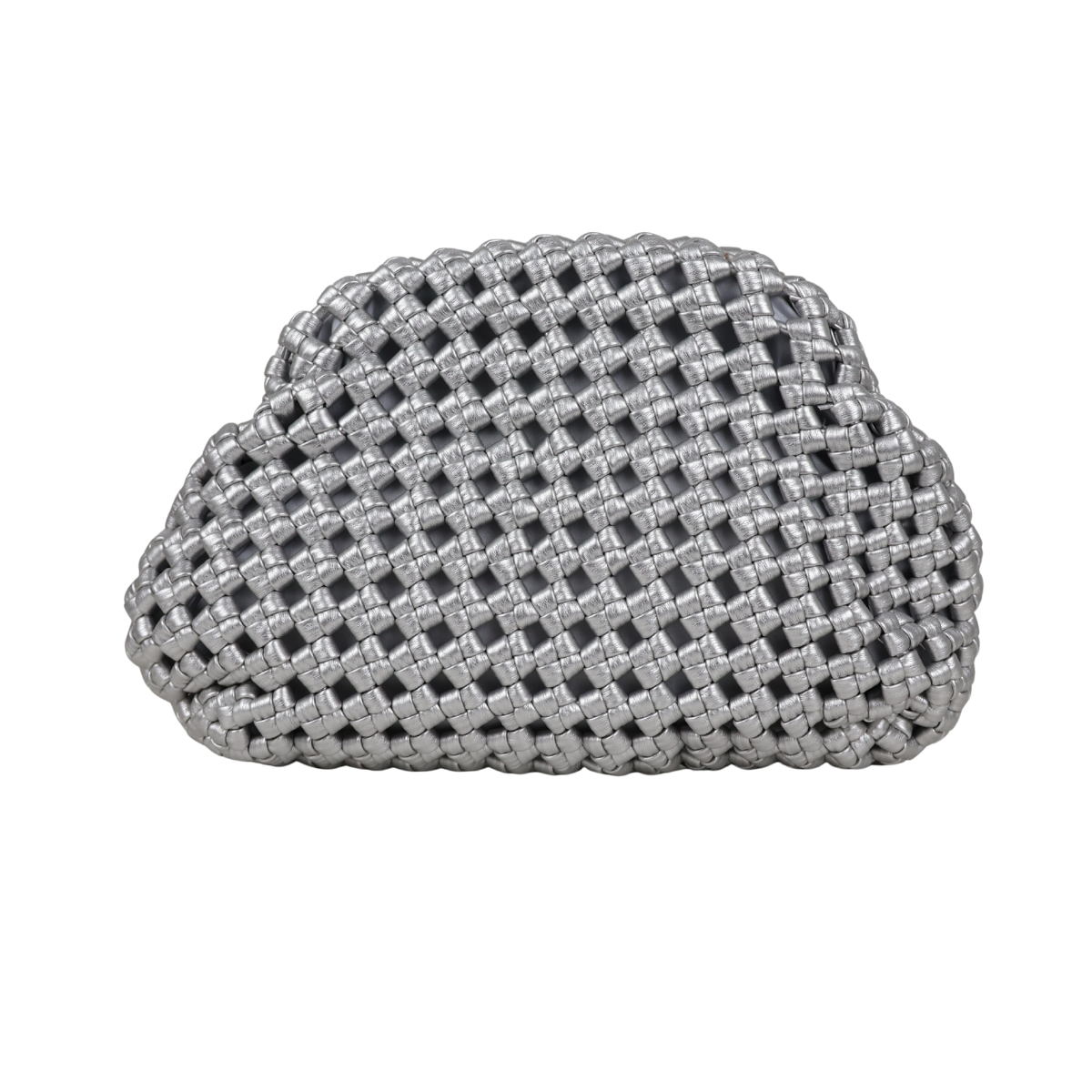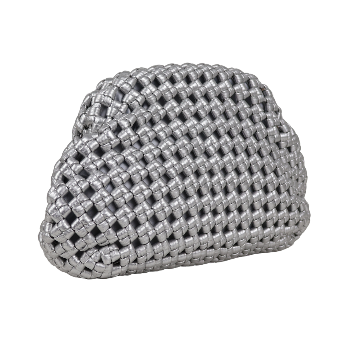 Bolsa de festa pouch ou transversal, acabamento em tramas feito à mão, fecho magnético, interior forrado, acompanha alça transversal removível.