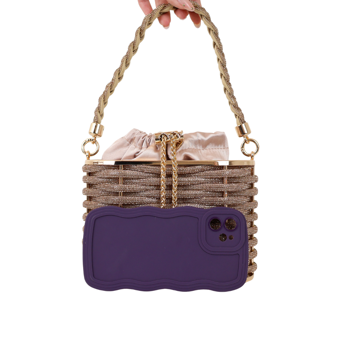 Bolsa de Festa Clutch Strass Translúcido Dourada