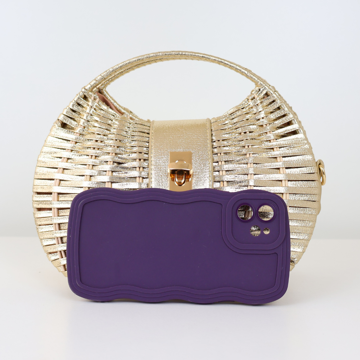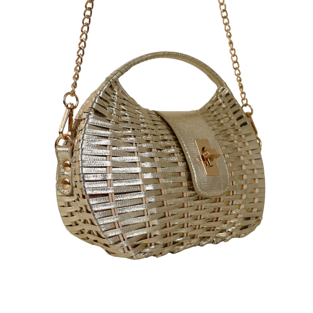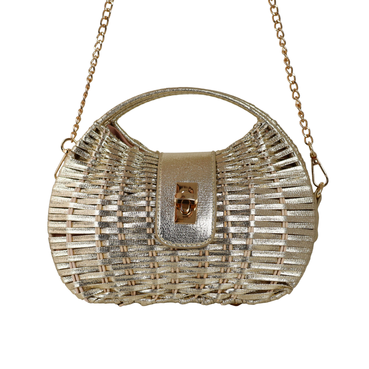 Bolsa de Mão Cesto em Vime Dourada