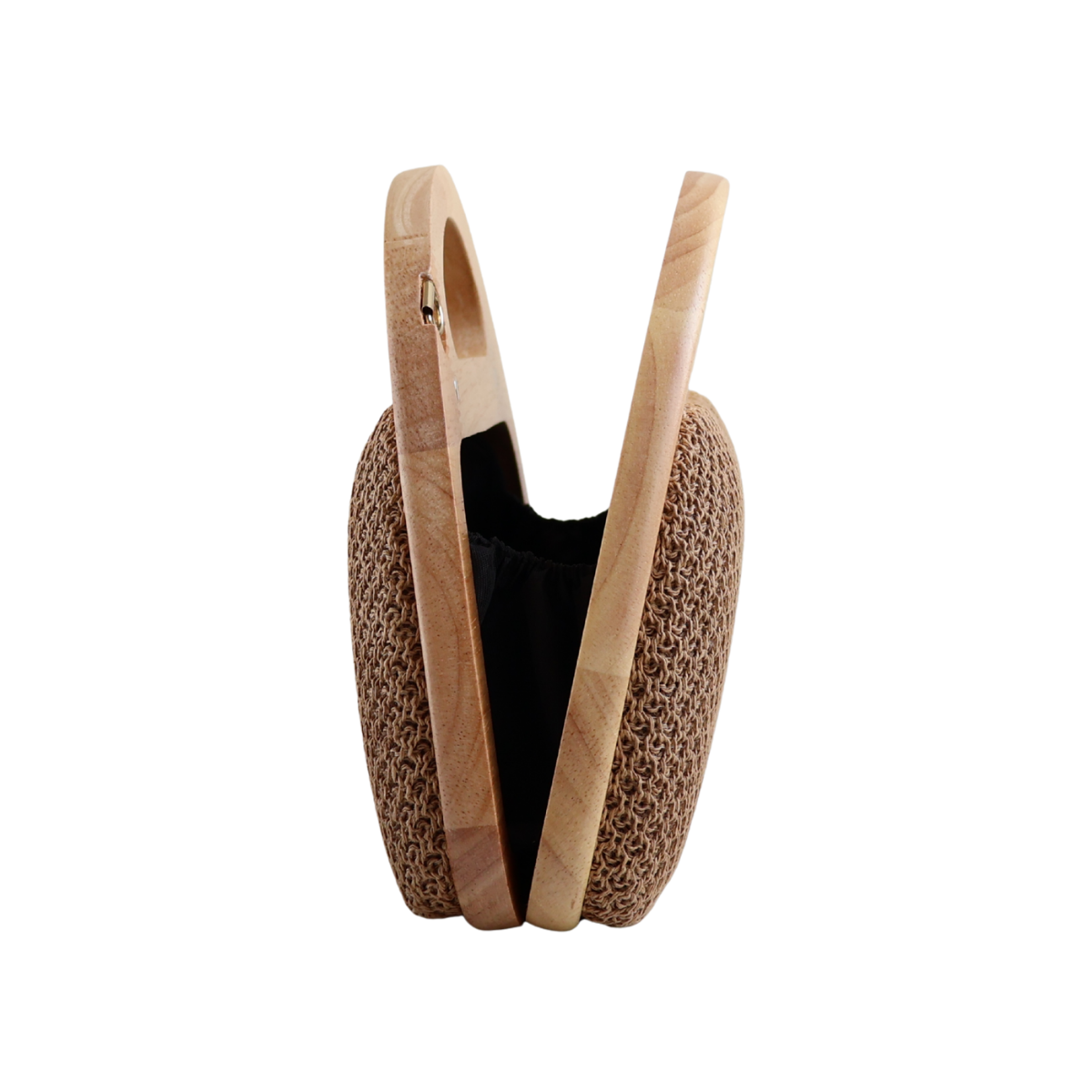 Bolsa de mão em palha sintética, bordas arredondadas, fecho de encaixe, interior forrado. Traz 1 alça transversal removível.