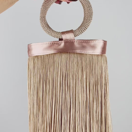 Bolsa de Mão Festa Franja Tassel Bege