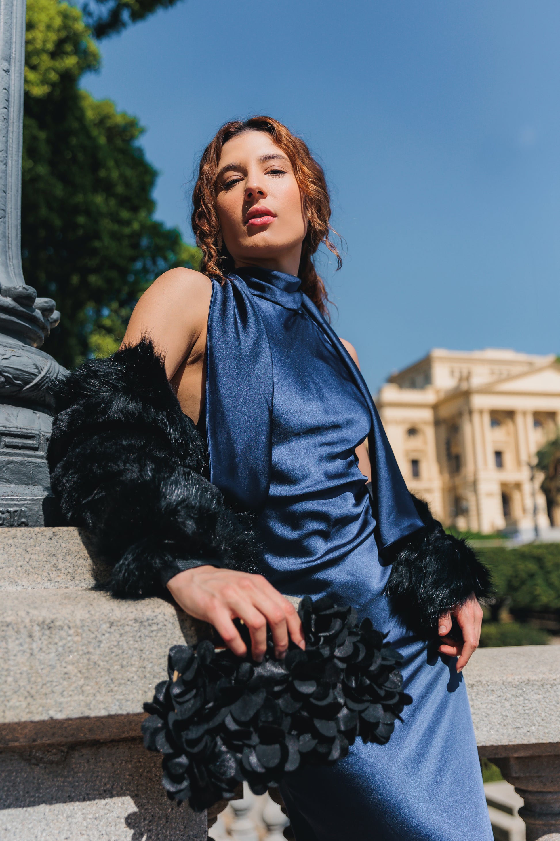 Bolsa Festa Clutch Pedraria Azul Turquesa Oval