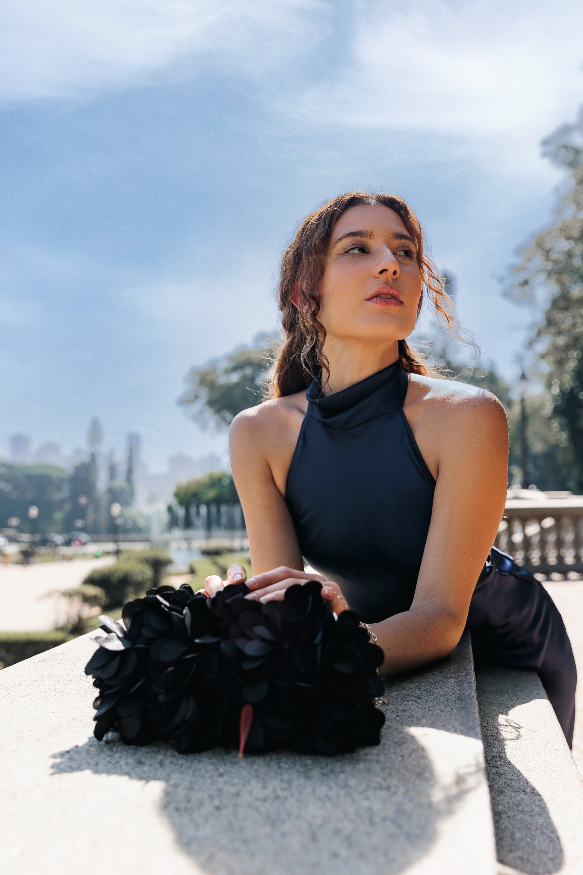 Bolsa Festa Clutch Flores Preta