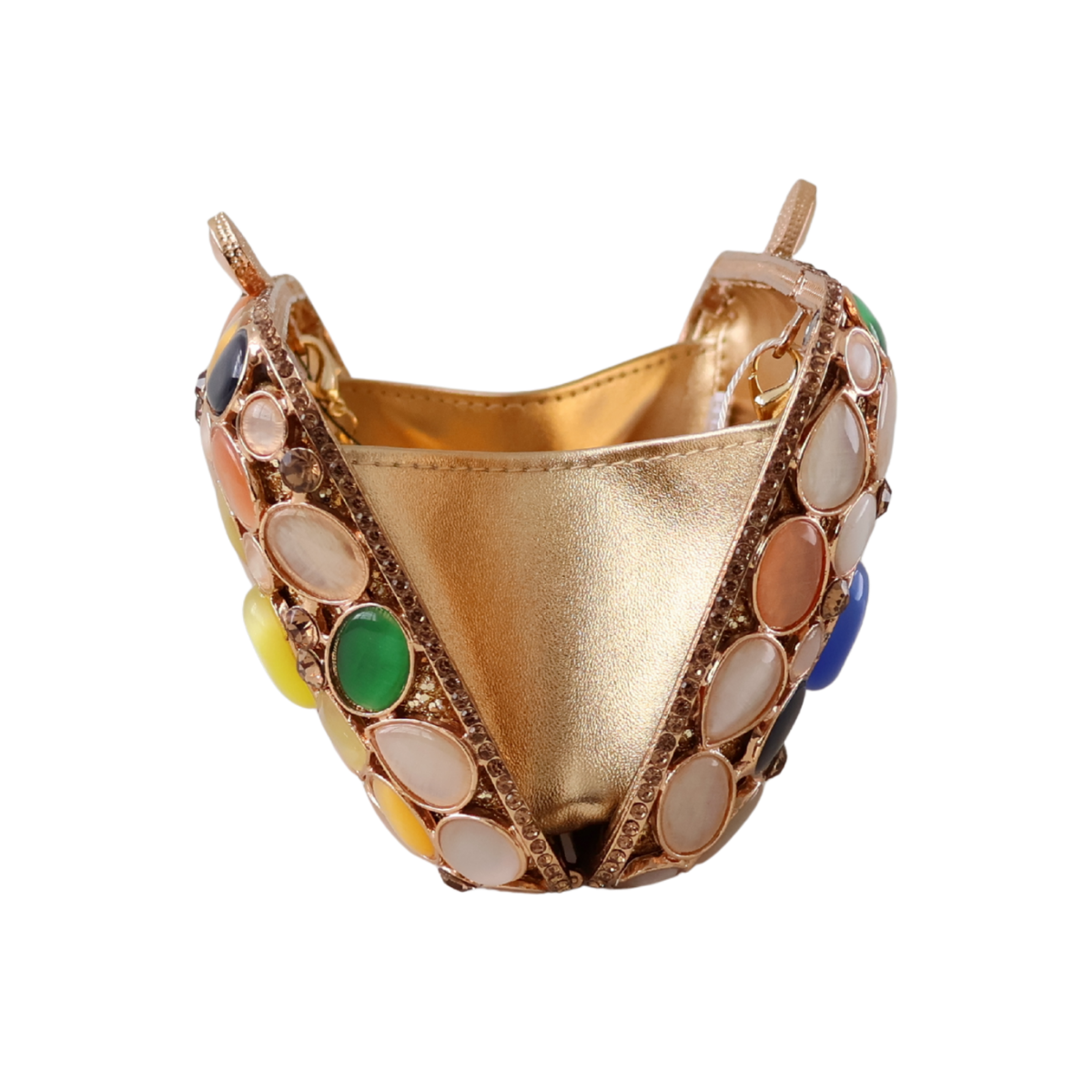 Bolsa Festa Clutch Pedraria Colorida Oval Ferragem Dourada