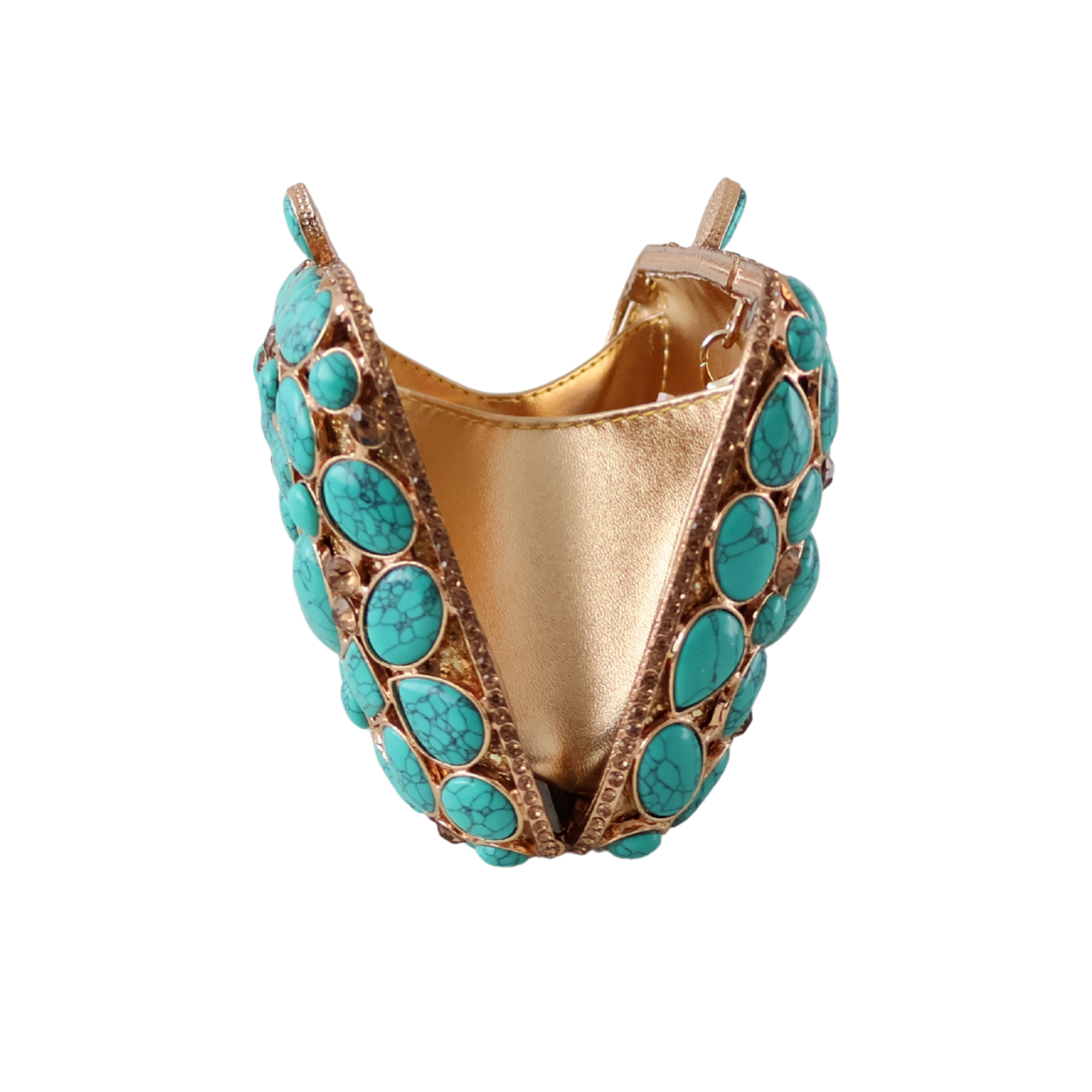 Bolsa Festa Clutch Pedraria Azul Turquesa Oval
