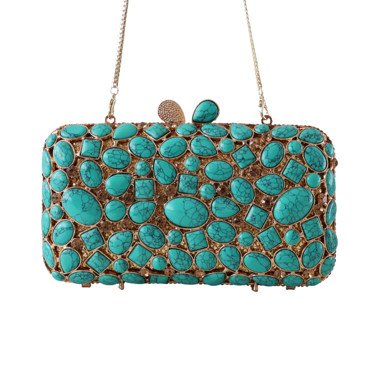 Bolsa Festa Clutch Pedraria e Perolada Turquesa