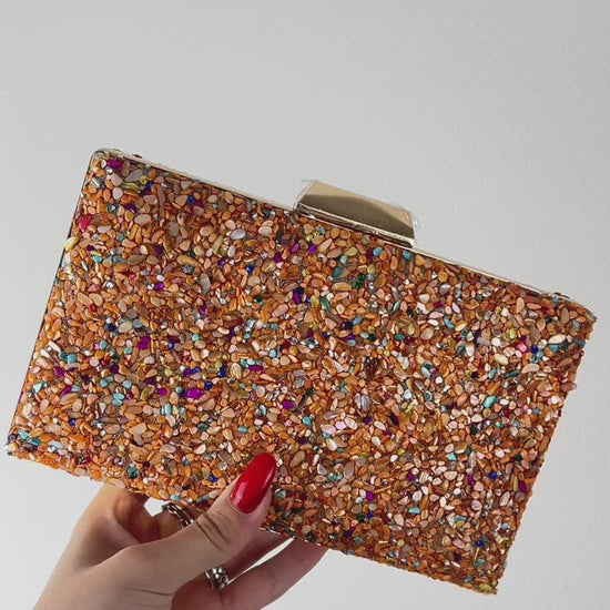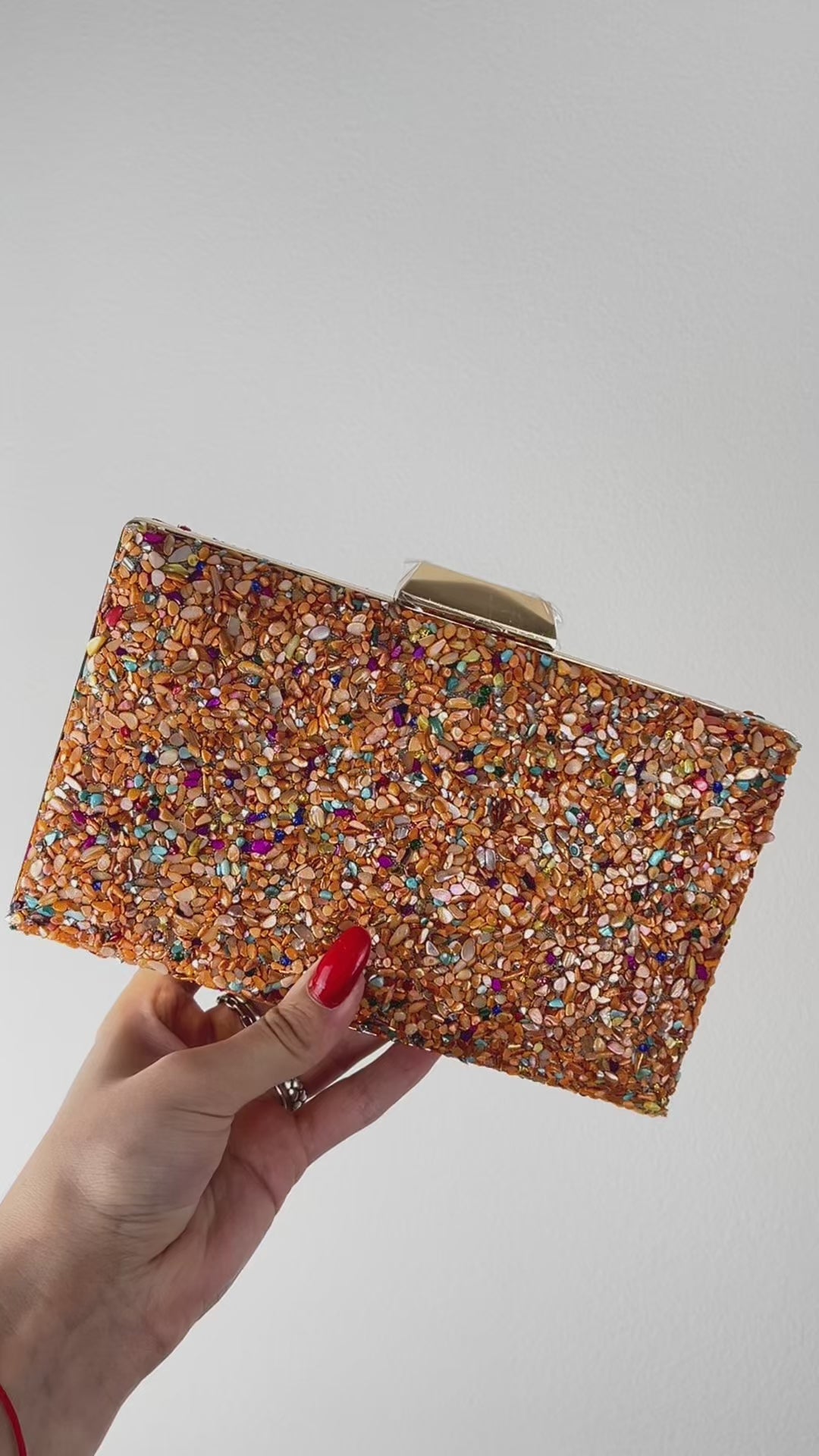 Bolsa Festa Clutch Pedraria Colorida Oval Ferragem Dourada