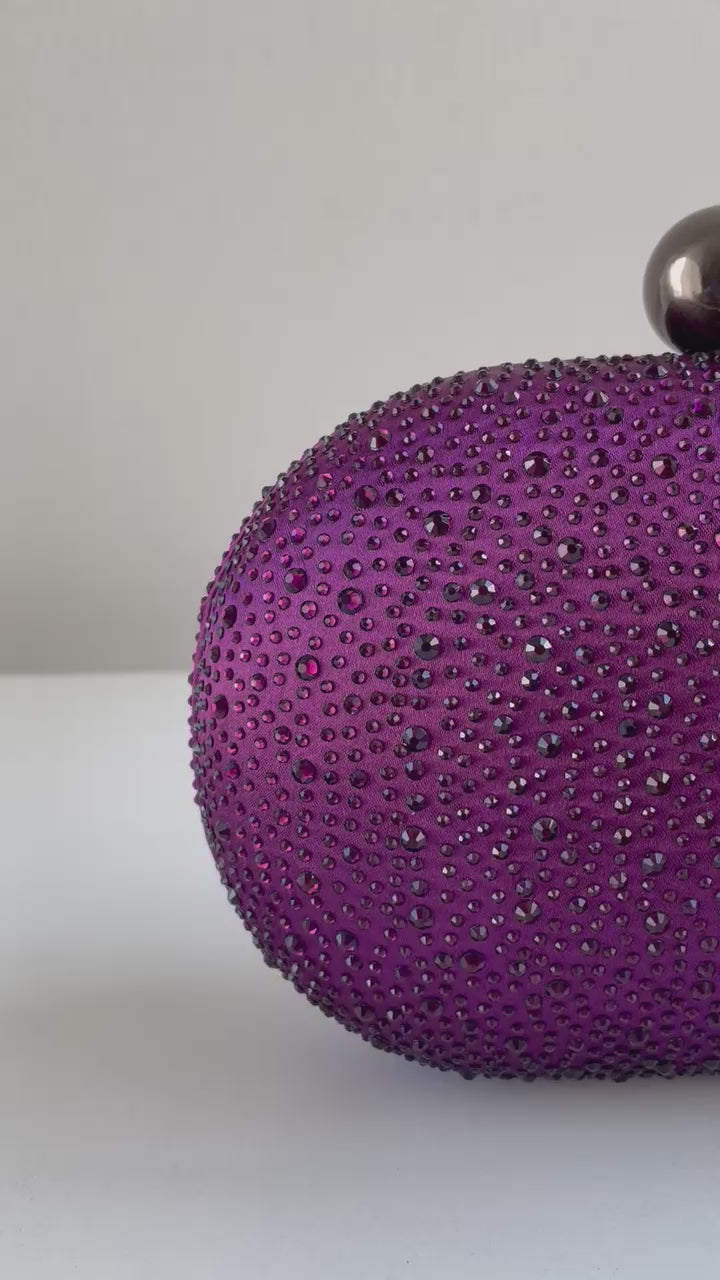 Bolsa Festa Clutch Pedraria Strass Oval Roxo
