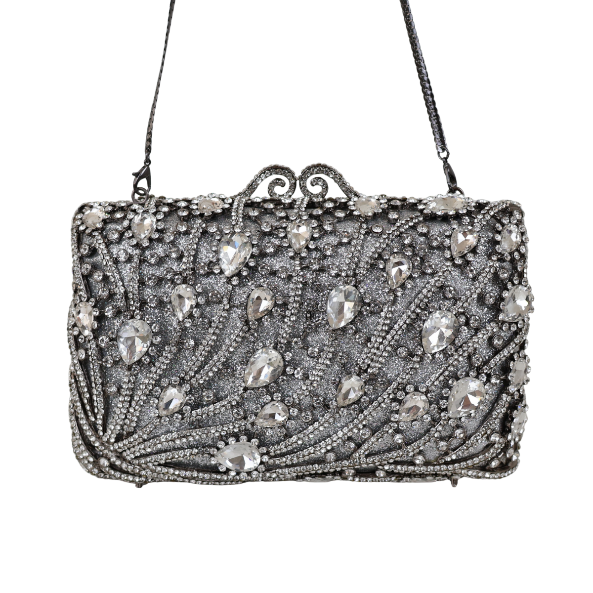 Bolsa Festa Clutch Pedraria Strass Prata Grafite