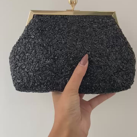 Bolsa Festa Clutch Pouch Pedraria Preta