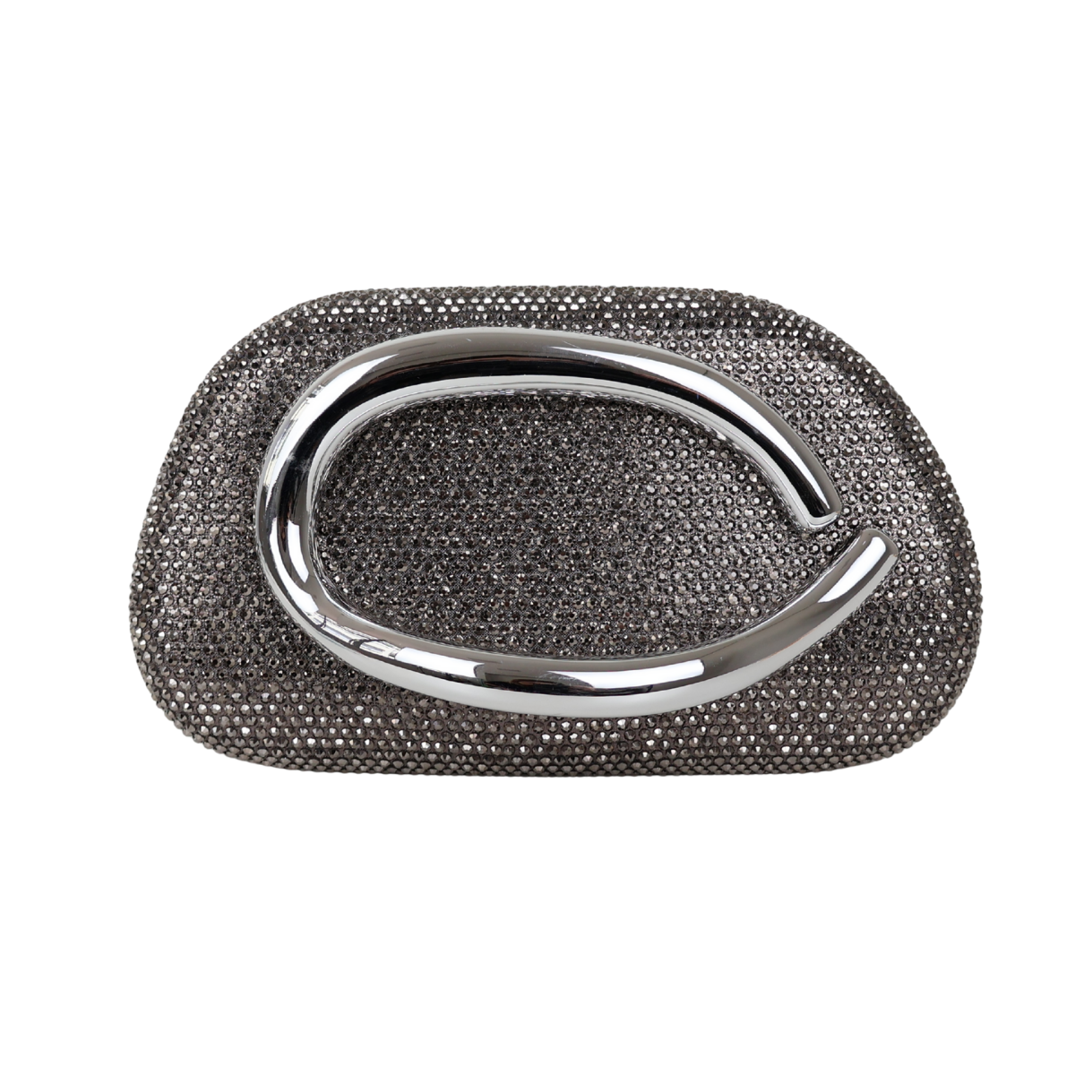 Bolsa Festa Clutch Pedraria Strass Oval Grafite