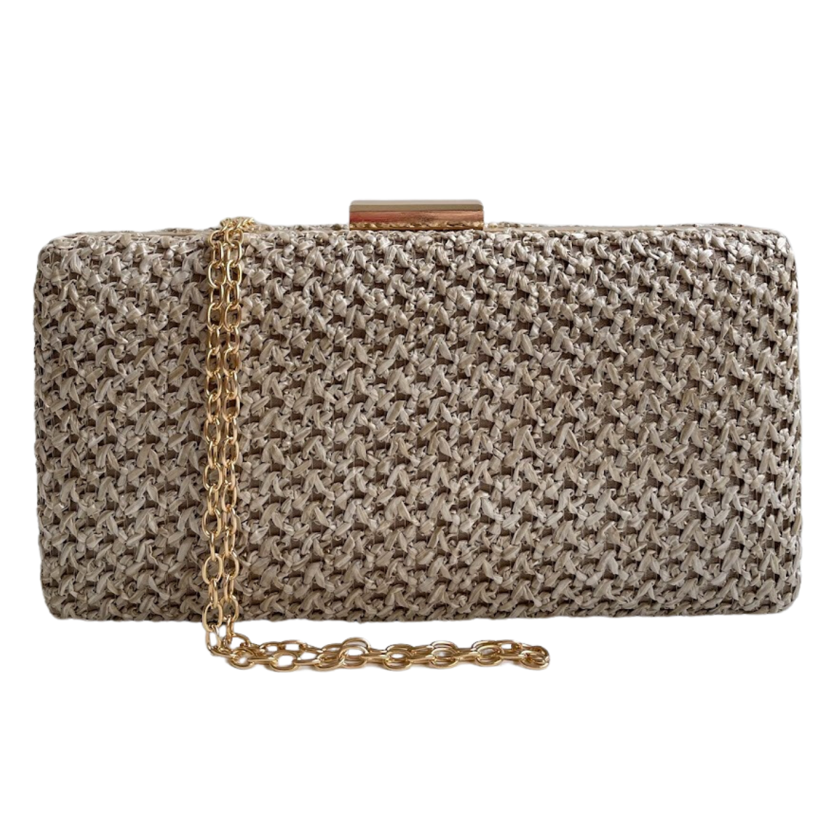 Bolsa Festa Clutch Trama Palha Bege Escuro