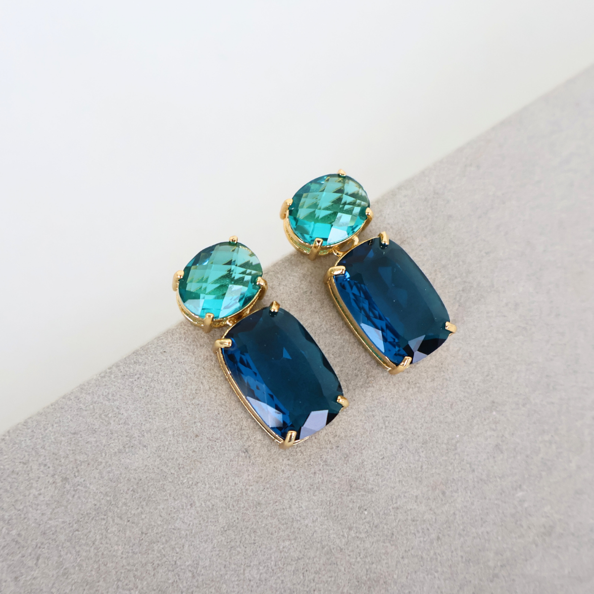 Brinco Dourado e Cristal Azul - Semijoia