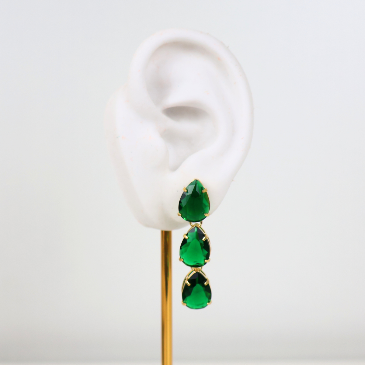 Brinco Dourado e Cristal Verde - Semijoia
