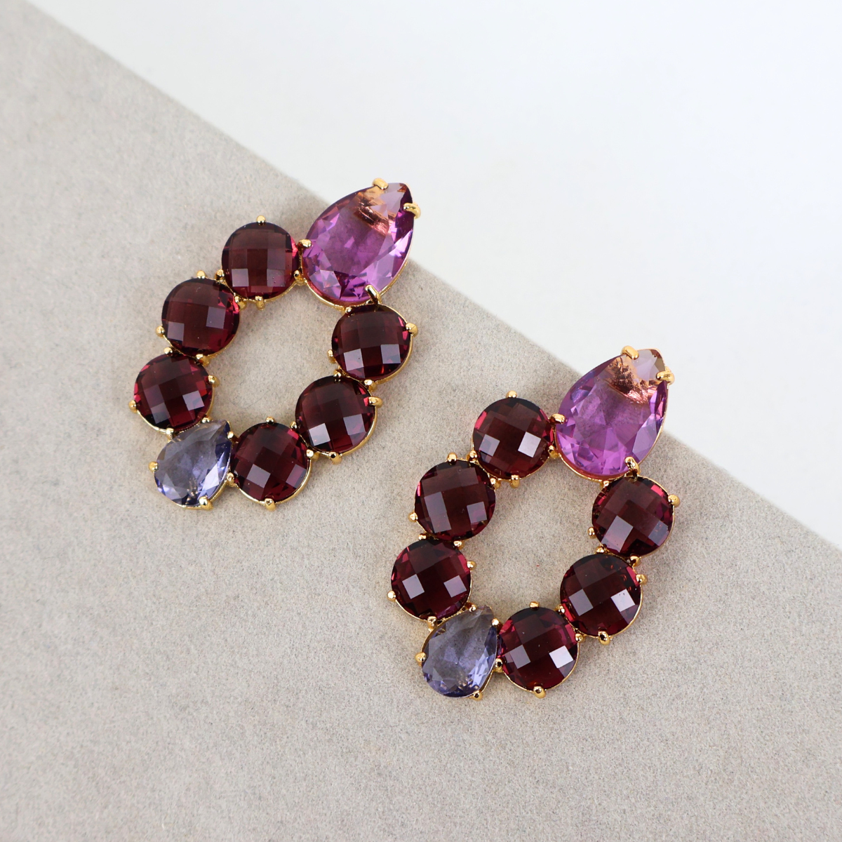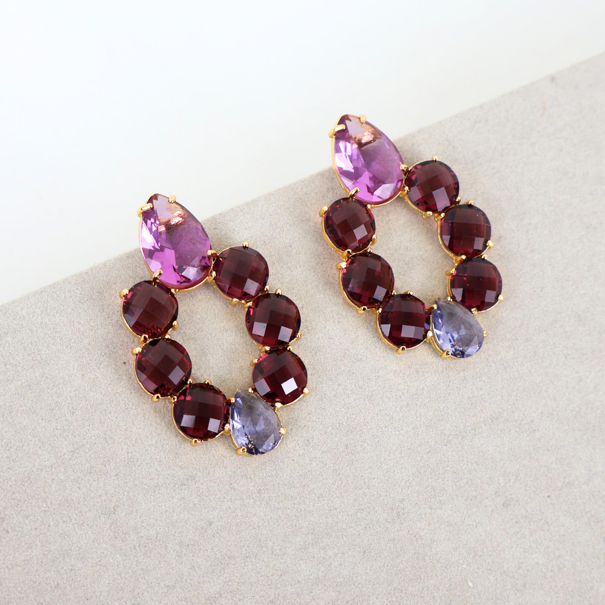 Brinco Dourado e Cristal Vinho e Roxo - Semijoia