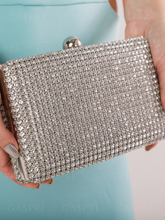 Bolsa de Festa Clutch Cristais Pedraria Prateada
