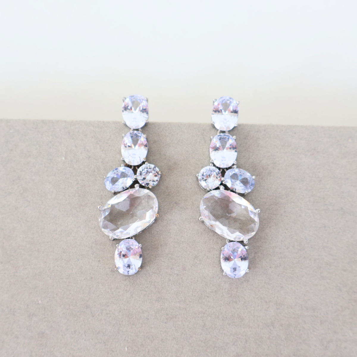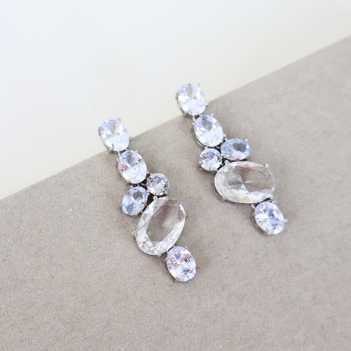 Brinco Prateado e Cristal Translúcido - Semijoia