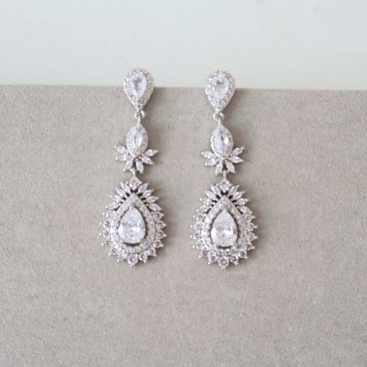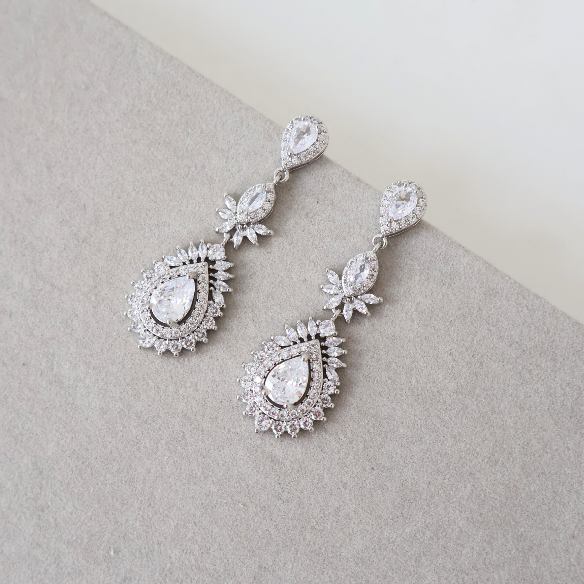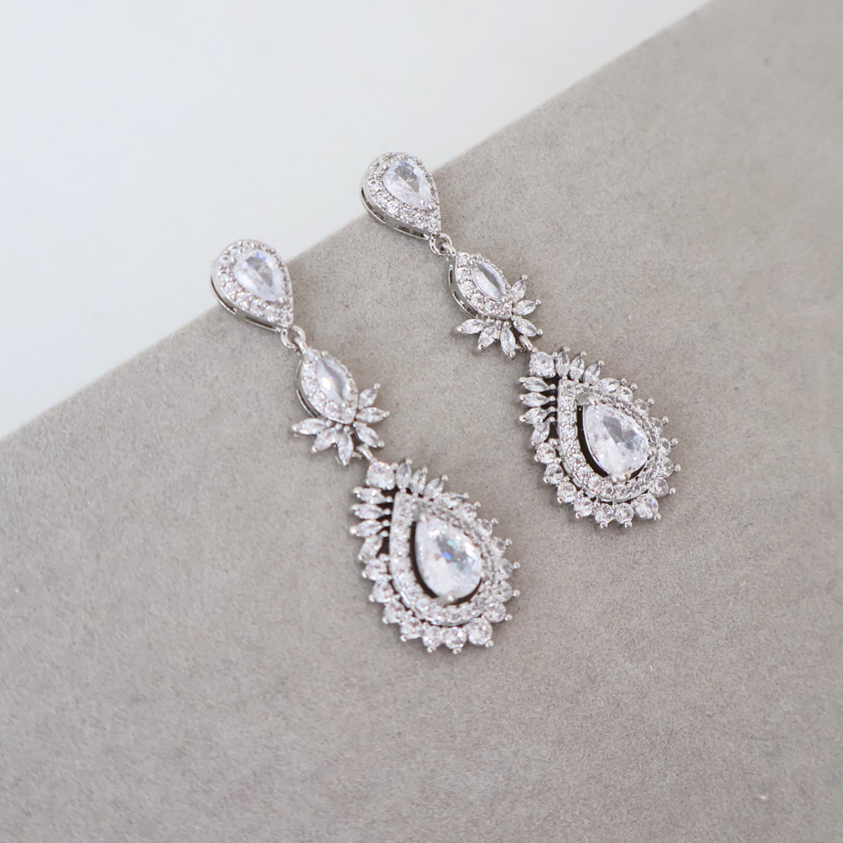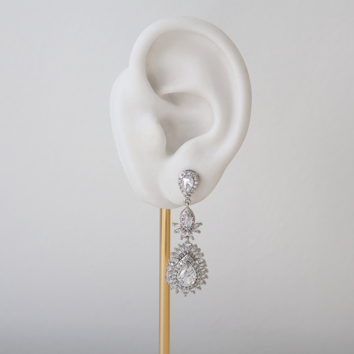 A peça é banhada com ródio branco (3 milésimos) e finalizada com verniz que proporciona um acabamento levemente mate, destacando o cristal. Ideal para eventos como casamentos e formaturas.
