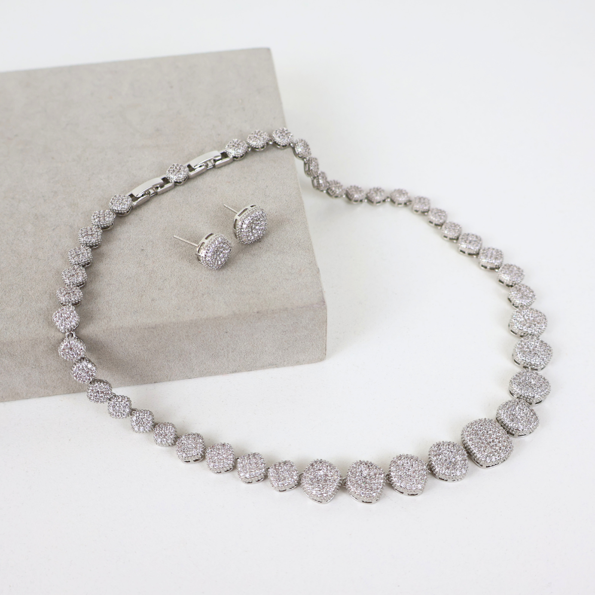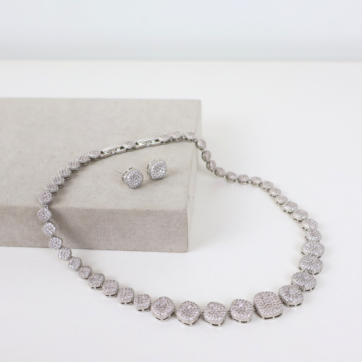 Kit Brinco e Colar - Prateado e Cristal Translúcido - Semijoia