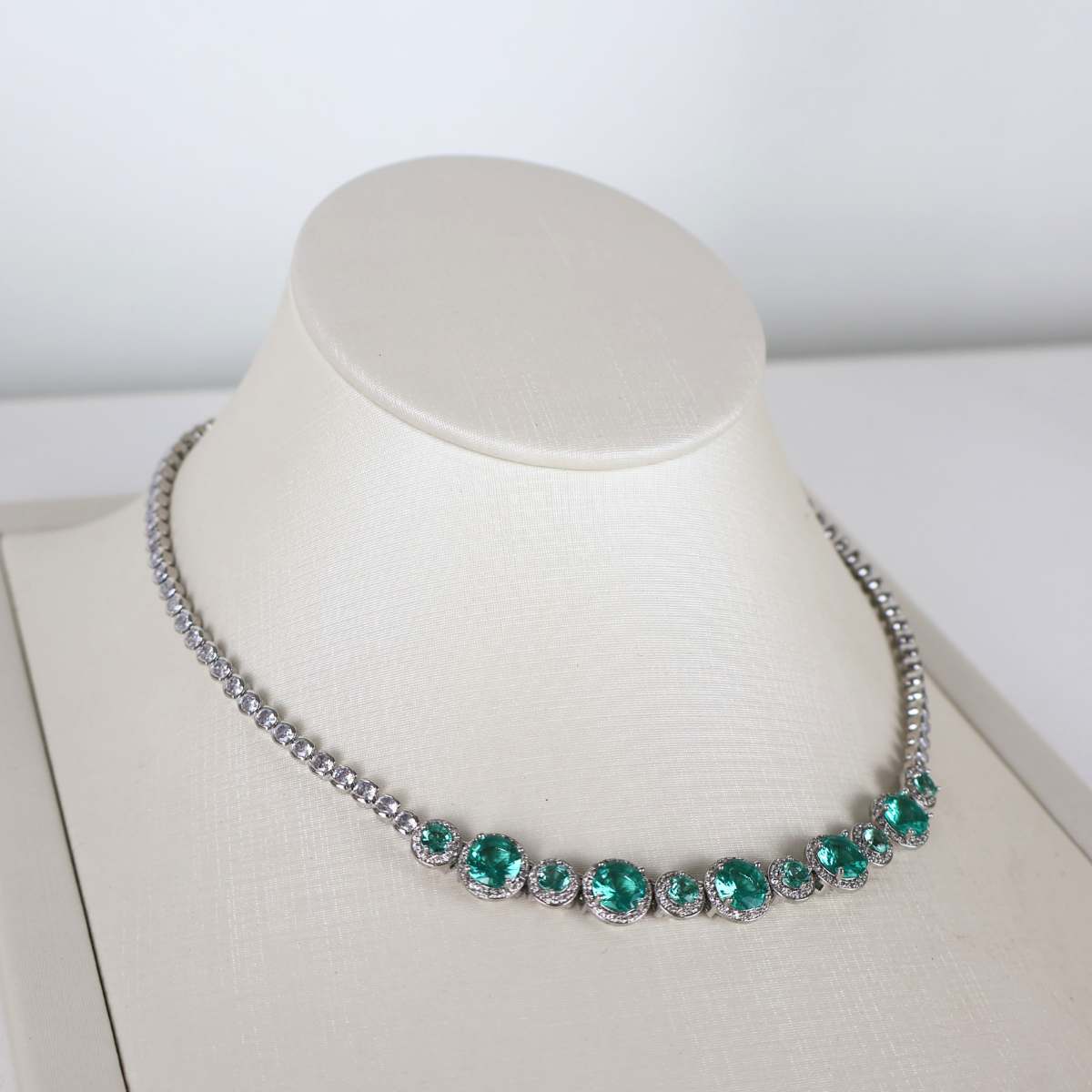 Kit Colar e Brinco - Cristal Turquesa - Prateado